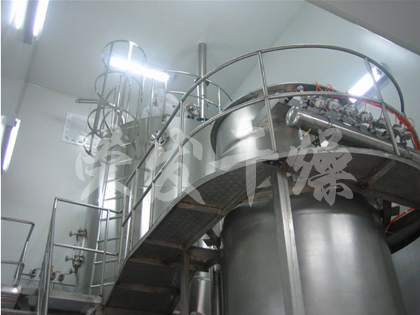 中藥浸膏高速離心噴霧裝置 是離心式噴霧干燥技術(shù)在特定物料干燥中的應用,也是利用高速離心式霧化器使 物料分散成霧狀,與熱空氣充分接觸,完成瞬間干燥,形成粉狀成品的干燥裝 置。
